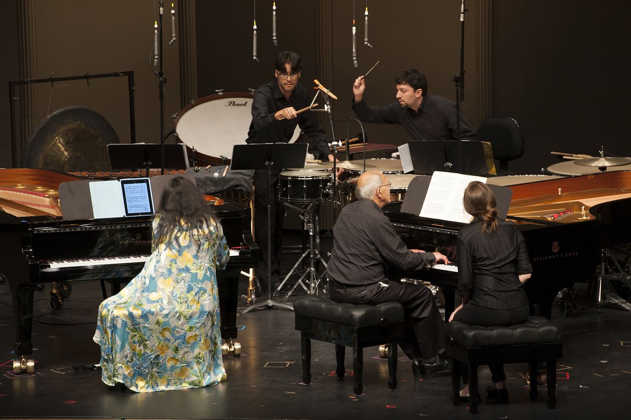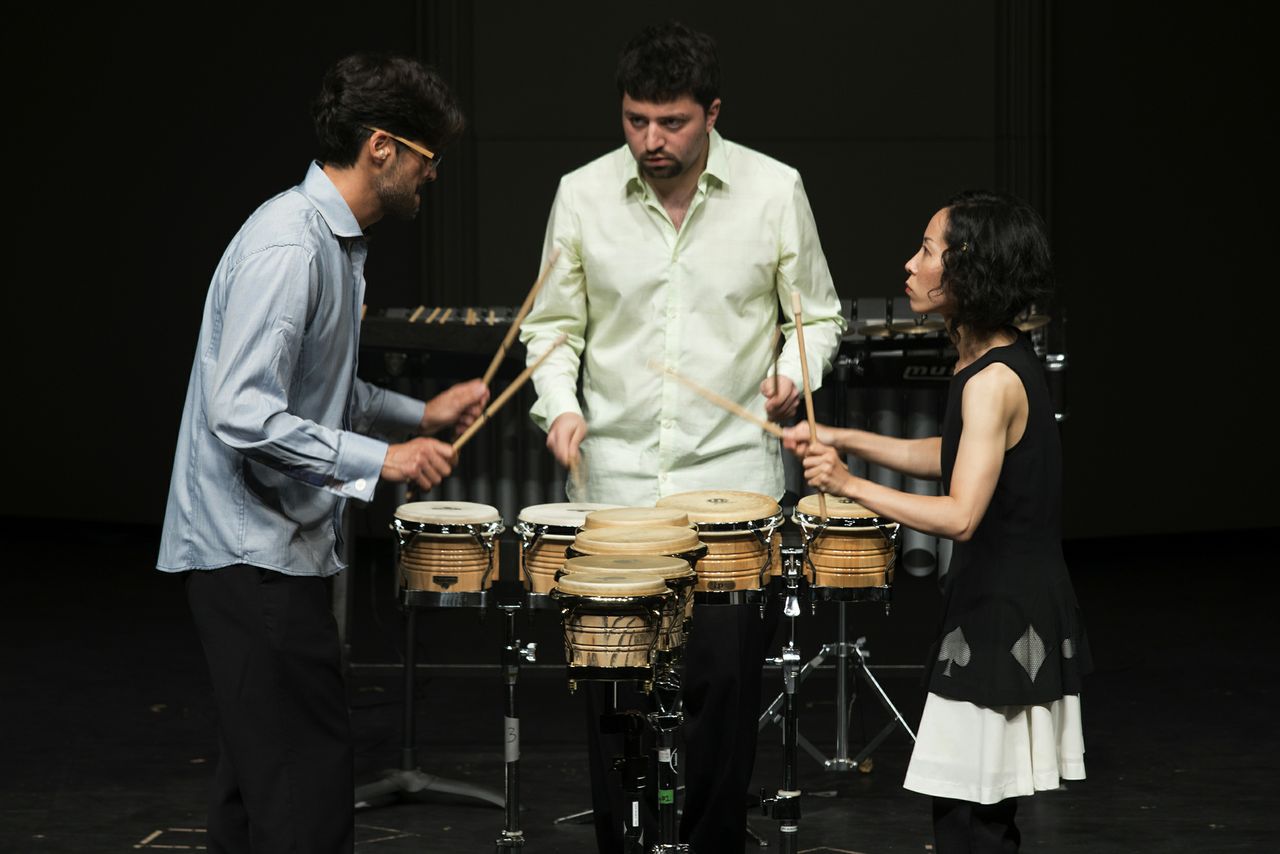 La noche siguiente, Ayano Kataoka se sumó a Froh y Rosenbaum para un concierto de percusión que deslumbró a una audiencia cuya curiosidad fue premiada, quedando estupefacta, iniciada, adicta. Un Bach inesperado abrió el fuego en trascripción para marimba de la tercera partita para violín firmada e interpretada por Kataoka seguida por dos selecciones del Book of Grooves del argentino Alejandro Viñao. El mosaico sonoro terminó de armarse con humor, virtuosismo, introspección y certero efecto. Si RailRoad Drama de Mauricio Kagel y la adorable Table Music de Thierry de Mey aportaron sonrisas, el asombro llegó con Piece for Tape de Colin Nancarrow trascripta por Dominic Murcott, Trio per uno de Nebojsa Zivkovic, Rain Tree de Takemitsu y los hoy ya clásicos In a Landscape de John Cage y Drumming de Steven Reich que acabó de conquistar (mejor dicho, convertir), al público. La diminuta Kataoka es una fuerza de la naturaleza que parece multiplicarse en escena, no le van a la zaga Rosenbaum y Froh.