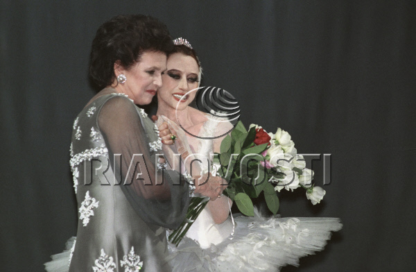 437798 03/01/1992 From left: Opera singer Galina Vishnevskaya [lyrical-dramatic soprano, born in 1926] and Soviet Russian ballet dancer, choreographer and People’s Artist of the USSR Maya Plisetskaya [born in 1925] during concert marking 45th anniversary of Vishnevskaya’s creative work. Yuryi Abramochkin/RIA Novosti