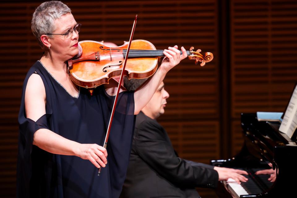 No forman un dúo en el sentido estricto del término; sin embargo, cada vez que coinciden sobre el escenario, circunstancia que afortunadamente se repite con notable frecuencia, la violista alemana Tabea Zimmermann y el pianista español Javier Perianes revelan una compenetración que remite a las asociaciones camerísticas más longevas. La naturaleza de su entendimiento —una suerte de combustión estética entre tradiciones centroeuropeas y mediterráneas— trasciende lo meramente colaborativo para situarse en el terreno de una afinidad artística orgánica, casi instintiva. En el marco de su gira estadounidense, ofrecieron en Zankell Hall de Carnegie Hall neoyorkino un recital de excepcional altura, ante una sala colmada, en el que Perianes asumió, con refinada conciencia estilística, su papel de Caballero Andaluz realzando las virtudes de una auténtica Primera Dama. Ambos desplegaron refinadisima expresividad y un mismo enfoque potenciándose el uno al otro. Perianes en absoluto subordinado, sino articulador del discurso conjunto, realzando con discreción aristocrática la voz instrumental de Zimmermann, figura insoslayable de la viola contemporánea.